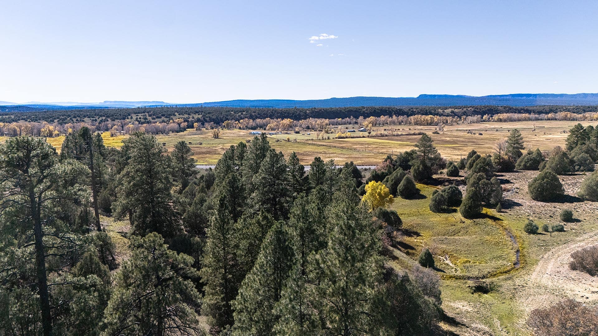 Not far from where the Brazos and Chama Rivers converge in northern New Mexico, lies El Baranco East, a beautiful 270± acre parcel of land. Located between Tierra Amarilla and Chama, the property boasts over a mile of highway frontage, providing easy year-round access.
